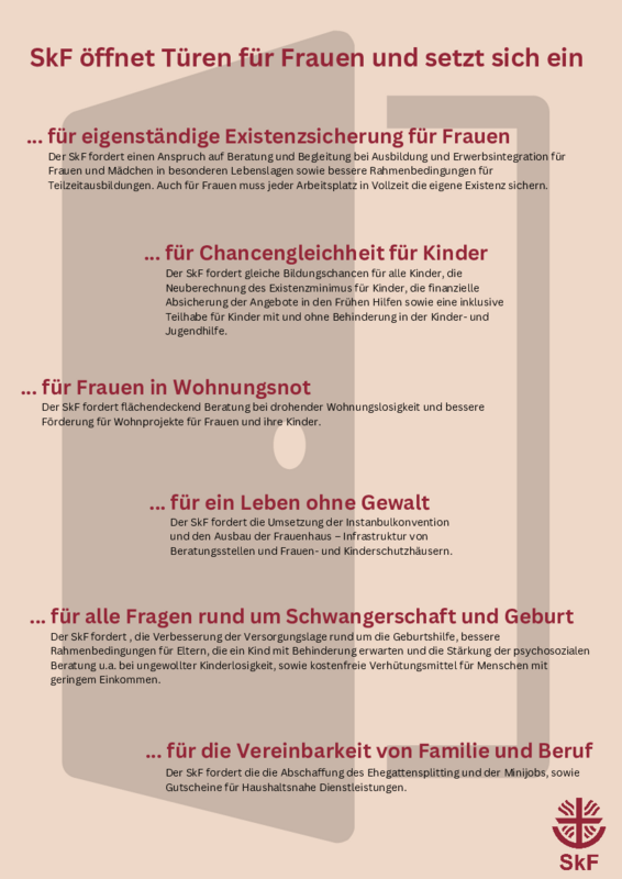 In den sozialen Medien stellt der SkF mit der Kampagne „Türen öffnen“ seine Positionen für die notwendigen Hilfen für Frauen und Kinder vor. Sie finden sie im Download-Bereich hier.